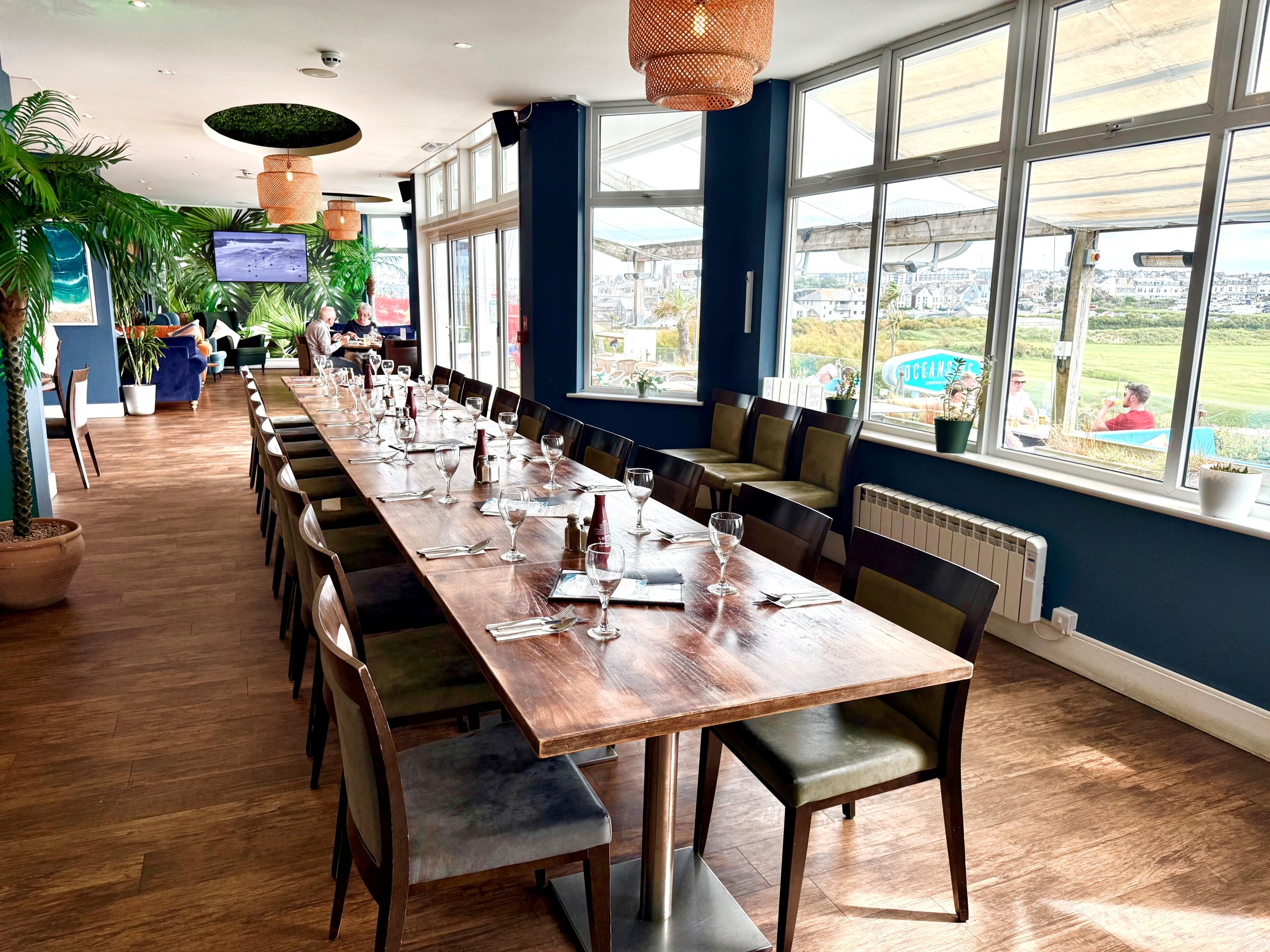 Whether you’re staying with us or generally looking for restaurants in Newquay, we’re open to you. Our expansive bar and restaurant area is the coolest hang-out spot in town, with its colour palette of calming neutral hues and plump sofas, it’s ideal for mingling with mates, dining dates, or simply whiling away the hours with a creamy hot chocolate or cocktail.